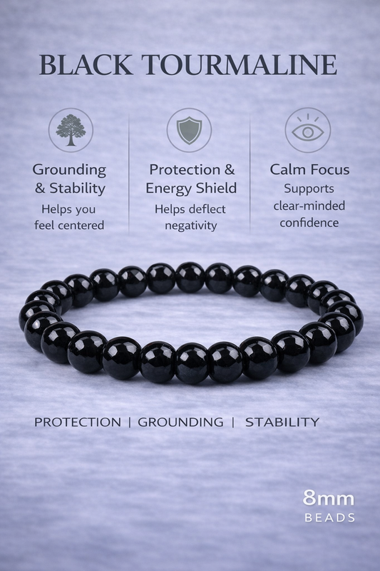 Black Tourmaline Bracelet (8mm) — Natural Stone Beads