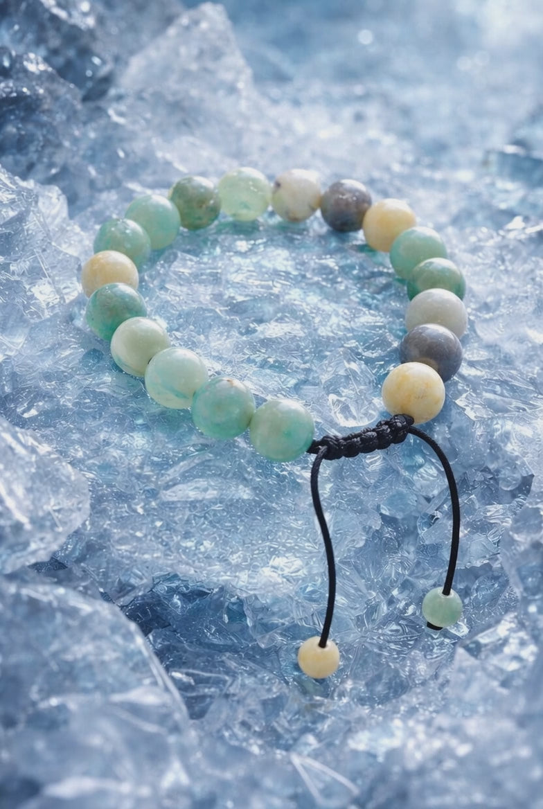 Amazonite Adjustable Bracelet with 10mm natural stone beads. This bracelet is designed to support calm energy, inner balance, and protection from negativity. The adjustable cord makes it easy and comfortable to wear, while the soft green-blue tones of Amazonite create an elegant and peaceful look. Perfect for everyday wear or as a meaningful gift.