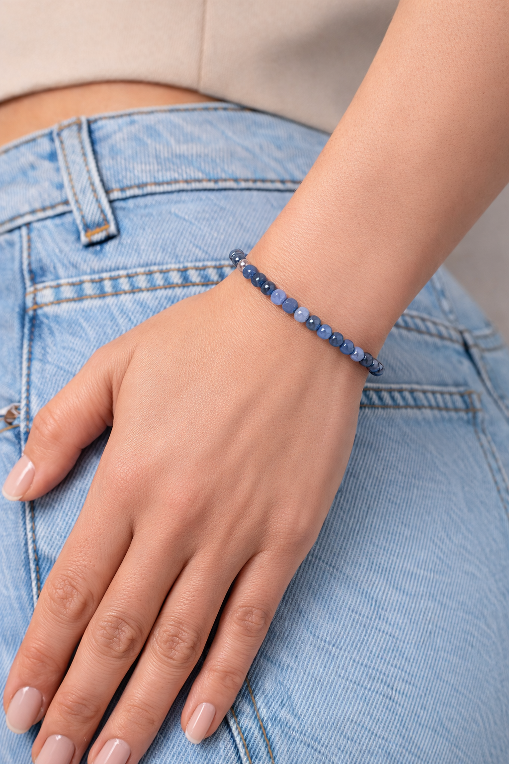 Clean, calm, and easy to style—this Blue Aventurine 4mm bead bracelet is a minimalist piece you can wear every day. The cool blue tones pair beautifully with casual looks or a more dressed-up outfit, and the slim bead size makes it perfect for stacking.