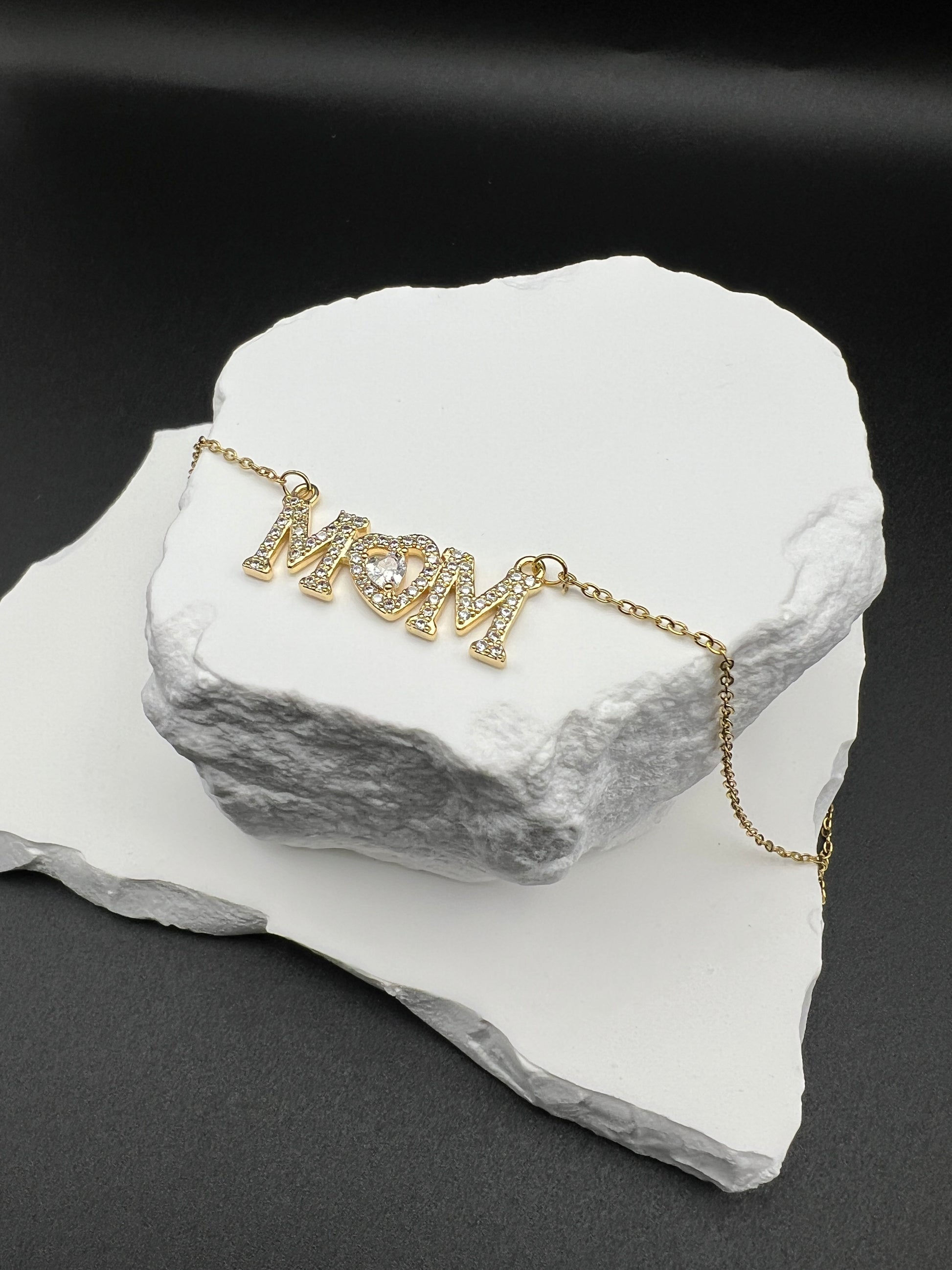 A sweet “I love you” you can wear every day. The MOM pendant is finished in a sleek silver tone and detailed with sparkling crystals, with a radiant heart at the center that catches the light from every angle. A perfect gift for Mom — simple, shining, and full of meaning.